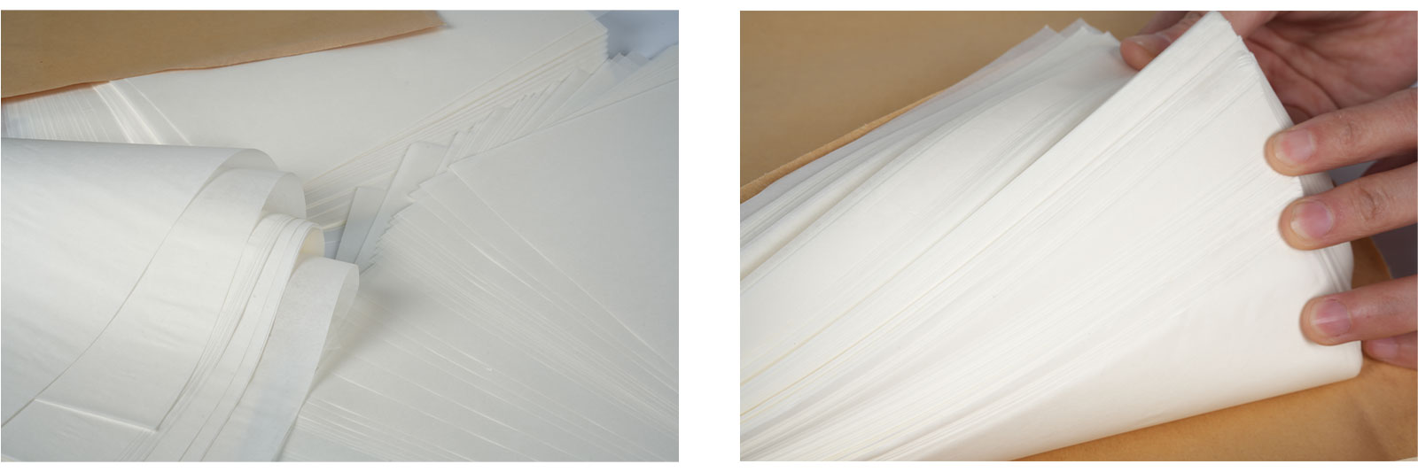 El problema de la colocación durante la cocina es a menudo un dolor de cabeza, por lo que nuestros productos adoptan un diseño profesional anti-stick. Puede eliminar fácilmente los alimentos de la bandeja para hornear y reducir los problemas de la limpieza. No solo protege la superficie de la bandeja para hornear, sino que también hace que el proceso de limpieza sea más eficiente, ahorrando tiempo y esfuerzo, y le permite concentrarse más en la creatividad y la delicia de la cocción. La superficie del papel de revestimiento de la bandeja para hornear está cubierta con un recubrimiento impermeable a prueba de aceite, que puede evitar fundamentalmente que la grasa y el líquido penetraran el papel. Esto significa que no tiene que preocuparse por los derrames y las fugas durante la cocción, manteniendo su bandeja para hornear limpia y ordenada. El revestimiento de la bandeja para hornear tiene buenas propiedades hidratantes, que pueden bloquear la humedad de los alimentos durante el proceso de cocción y mantener el alimento fresco y tierno. Esto hace que los platos que cocine sean más deliciosos.